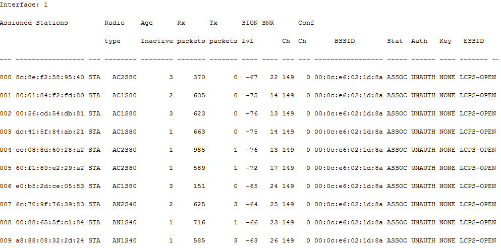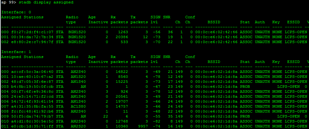 We recently received reports from a school that the wifi was “not working.” Early on in troubleshooting I could see that stations were associated to APs in the reported troublesome area. All the normal quick checks looked ok. There wasn’t high channel utilization, retries were low, the APs were not overwhelmed with clients, etc, etc. I touched base with the person who reported the trouble and they informed me that the issue affected all devices and that it seemed to be in one specific area; the library. I again checked the APs via the web ui and upon quick glance everything still looked ok. I logged into the controller CLI and issued the station database command to see what the clients were doing specifically on the library access points. And then it got cold……..