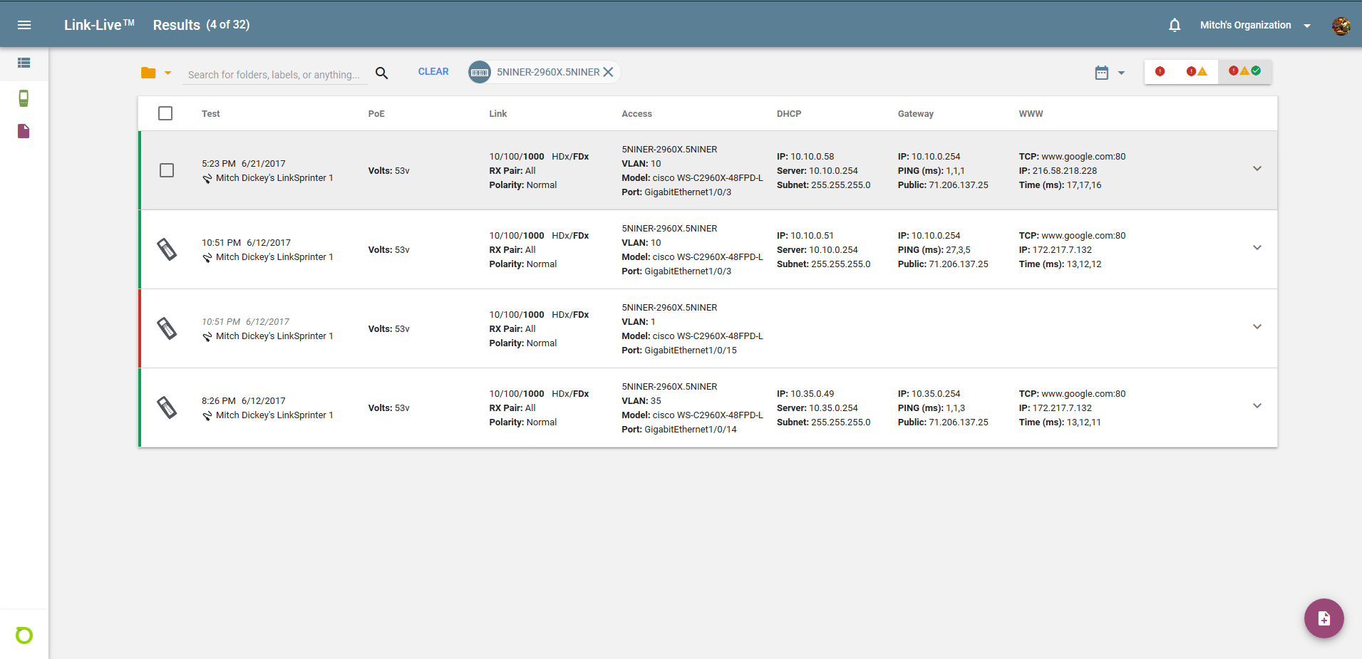 Chris also gave us a quick demo of the Link-Live dashboard. The Link-Live dashboard is a clean, easy to read area where you can collect the information that your various NETSCOUT tools gather. I have had the opportunity to use the Link-Live dashboard with my LinkSprinters for some time and I appreciate the simple layout. I can quickly get the information I need with a quick glance. The dashboard organizes your tests into a table and allows you to make annotations, as well as create reports from the collected data. NETSCOUT has definitely spent some time refining the layout making it easy to get the information you need from your test equipment.