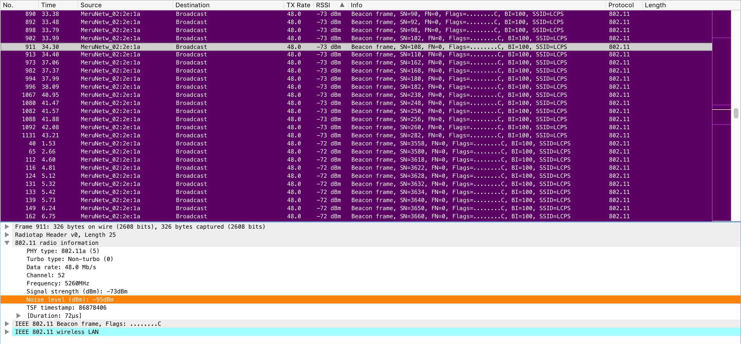 This time I was receiving most beacons with valid FCS in the mid -70s dBm. Further testing with the Chromebooks showed the results I wanted to see.